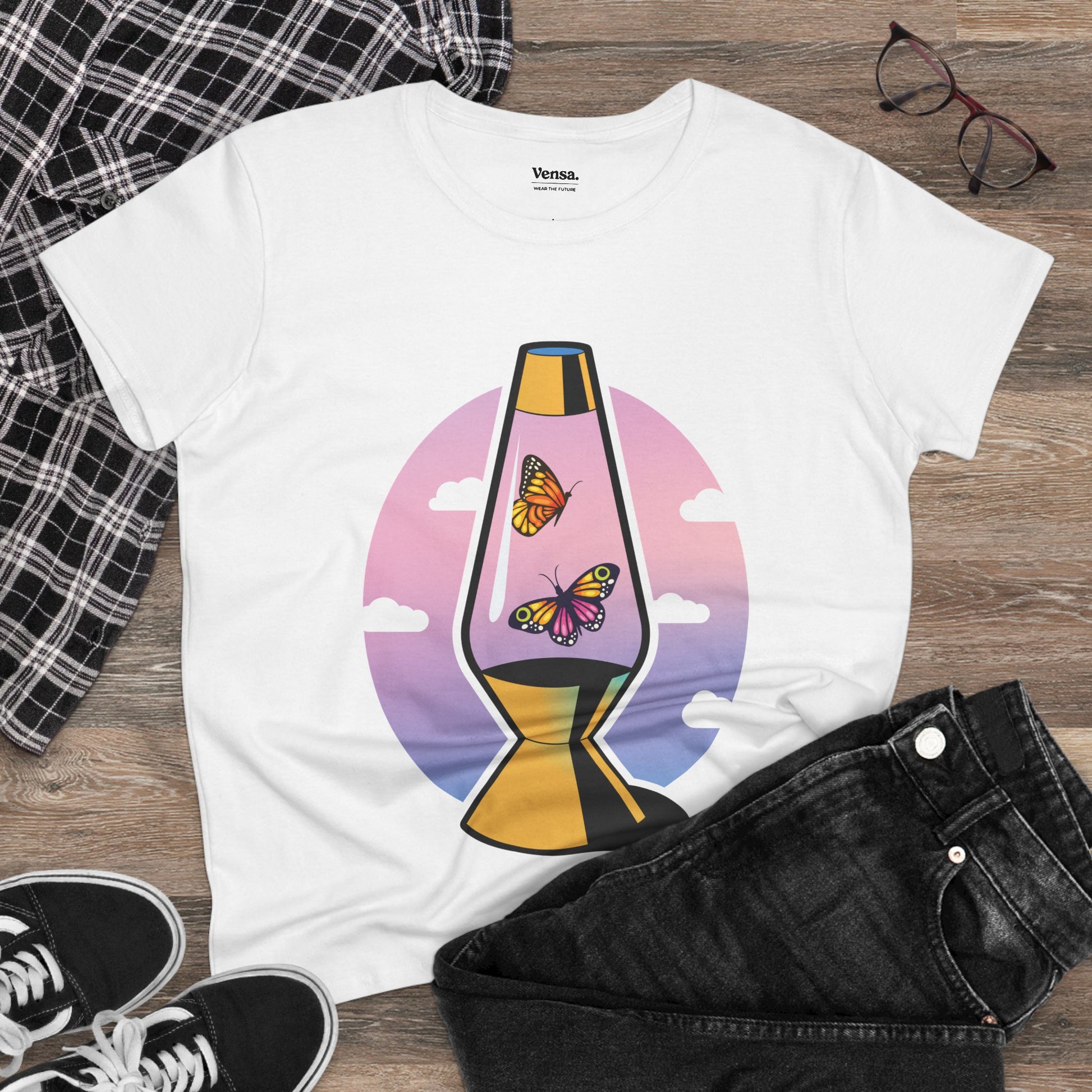 This Butterfly Lamp Spring Sky Tee exudes a sense of whimsy and lightness, perfect for the spring season. It's a semi-fitted tee made of 100% cotton medium-weight fabric that feels comfortable and breathable. Ideal for women who love nature-inspired designs and want to add a touch of brightness to their wardrobe. Perfect for springtime outings, picnics, and casual gatherings.