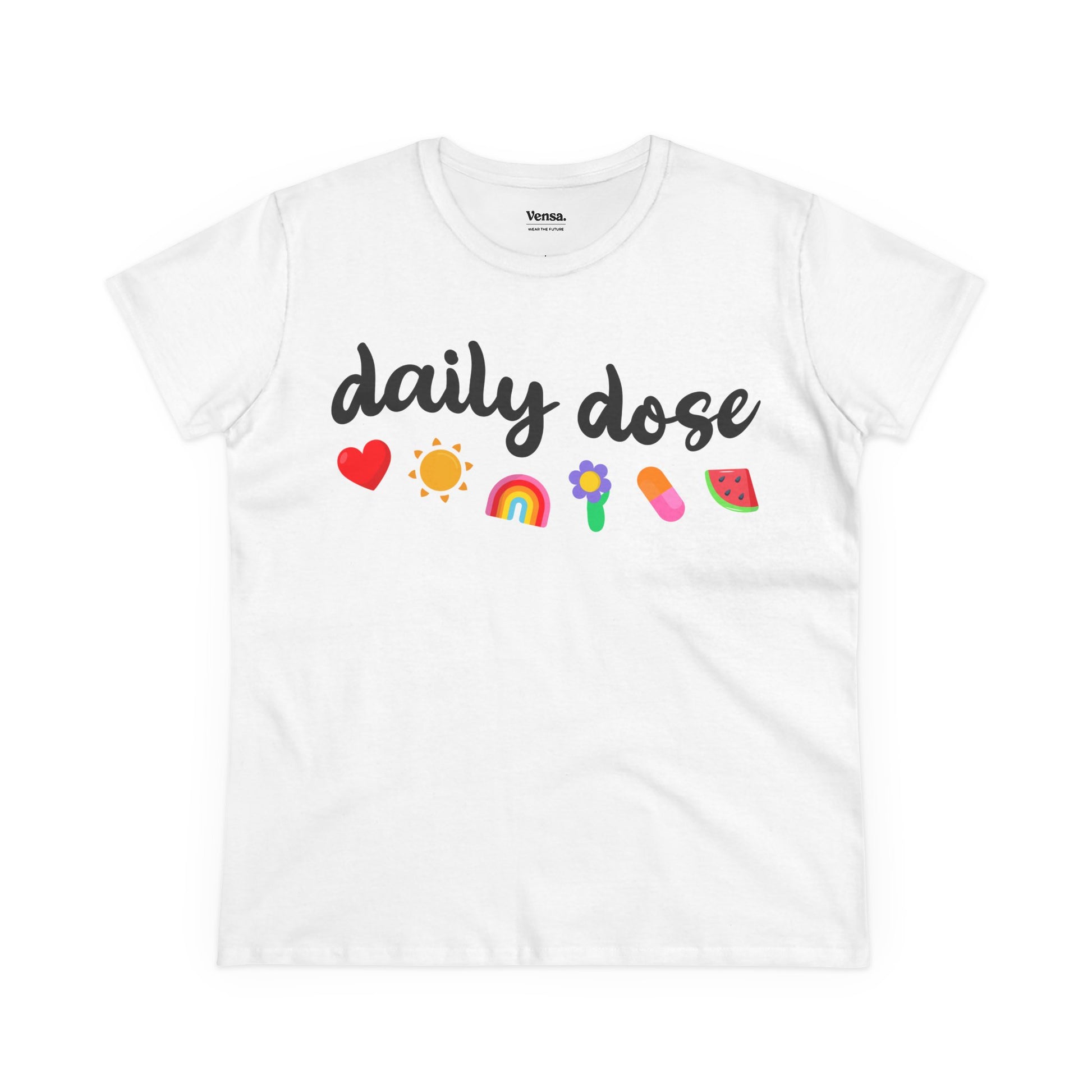 The Daily Dose Tee is the perfect addition to your everyday wardrobe. With its comfortable fit and versatile design, this tee can be worn casually or dressed up for any occasion. It gives off a relaxed and laid-back vibe, making it ideal for women looking for a stylish yet effortless look. This tee is relevant for daily wear, casual outings, and relaxed weekends.